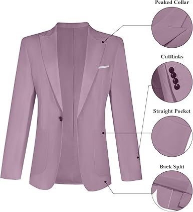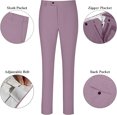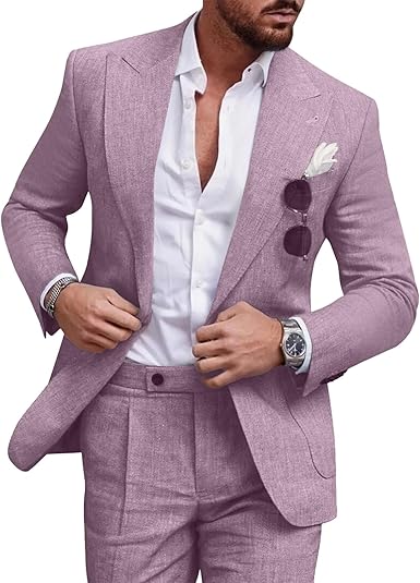 - DESIGN:This classically tailored two piece linen suit features a single button closure, elegant pointed lapel, functional pockets inside and outside the jacket, and side and back split for ease of movement. For the pants, we used flat front design with zipper placket to create an overall clean look and add confidence to you.