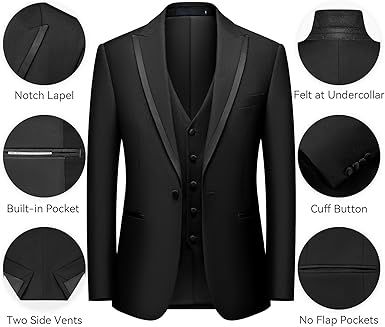 - Versatile for Every Event:From weddings and proms to banquets, interviews, and office wear, this 3-piece suit adapts effortlessly. Pair it with a tie for formal flair or go casual with an open shirt. With five versatile colors—timeless black, bold purple, crisp navy, relaxed khaki, or sleek light gray—you’ll find the perfect match for your style, whatever the occasion.