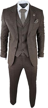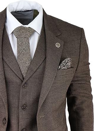 Mens Herringbone Tweed 3 Piece Suit Blue Classic Vintage Tailored Wedding Blinders