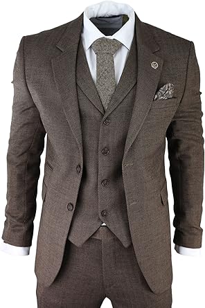 - Brown Coloured Herringbone Wool Feel Soft Touch Tweed Fabric With A Turn Down Collar Waistcoat
